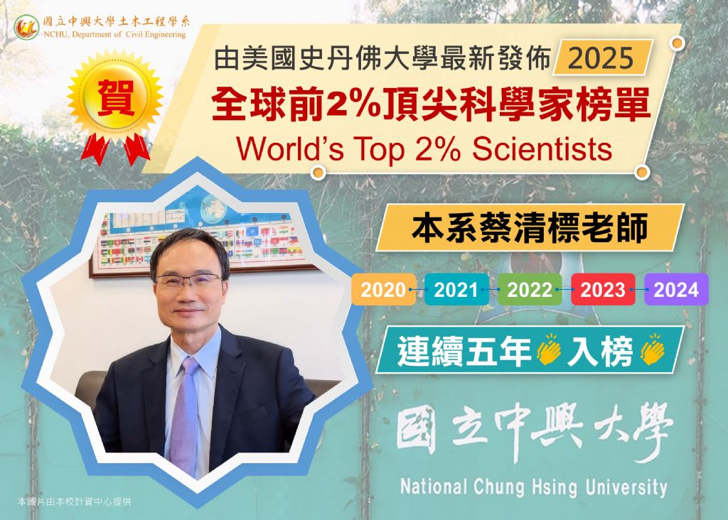 本系蔡清標、楊明德老師榮列史丹佛大學...