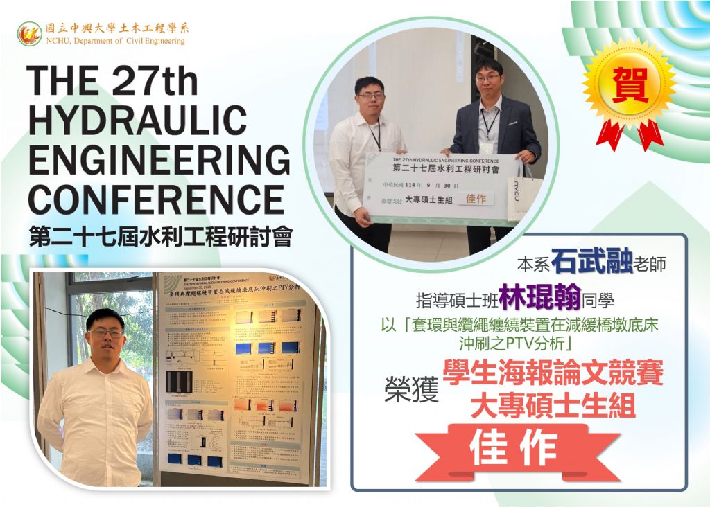 本系第十六屆碩士班傅桂霖學長榮獲本校...