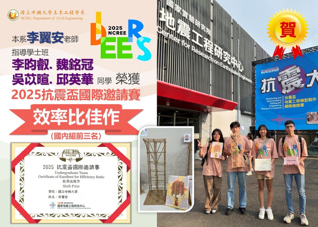 恭喜本校土木系黃振誠同學錄取NCHU...