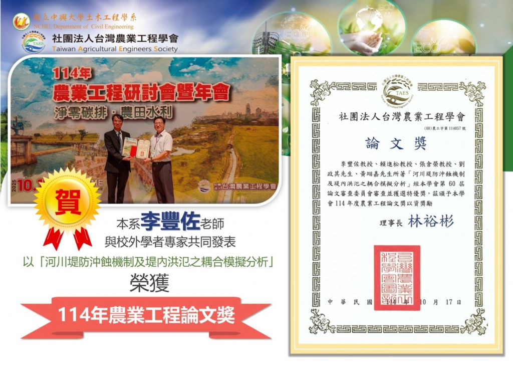 本系陳豪吉、蔡祁欽老師榮獲本校113...