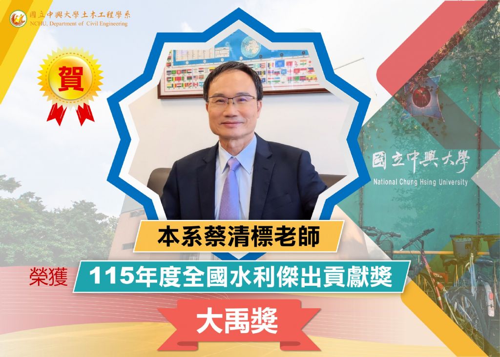 本系蔡清標老師榮獲經濟部水利署115年全國水利傑出貢獻獎「大禹獎」